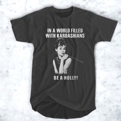 We use newest DTG Technology to print on to In a world filled with Kardashians be a holly t shirt.